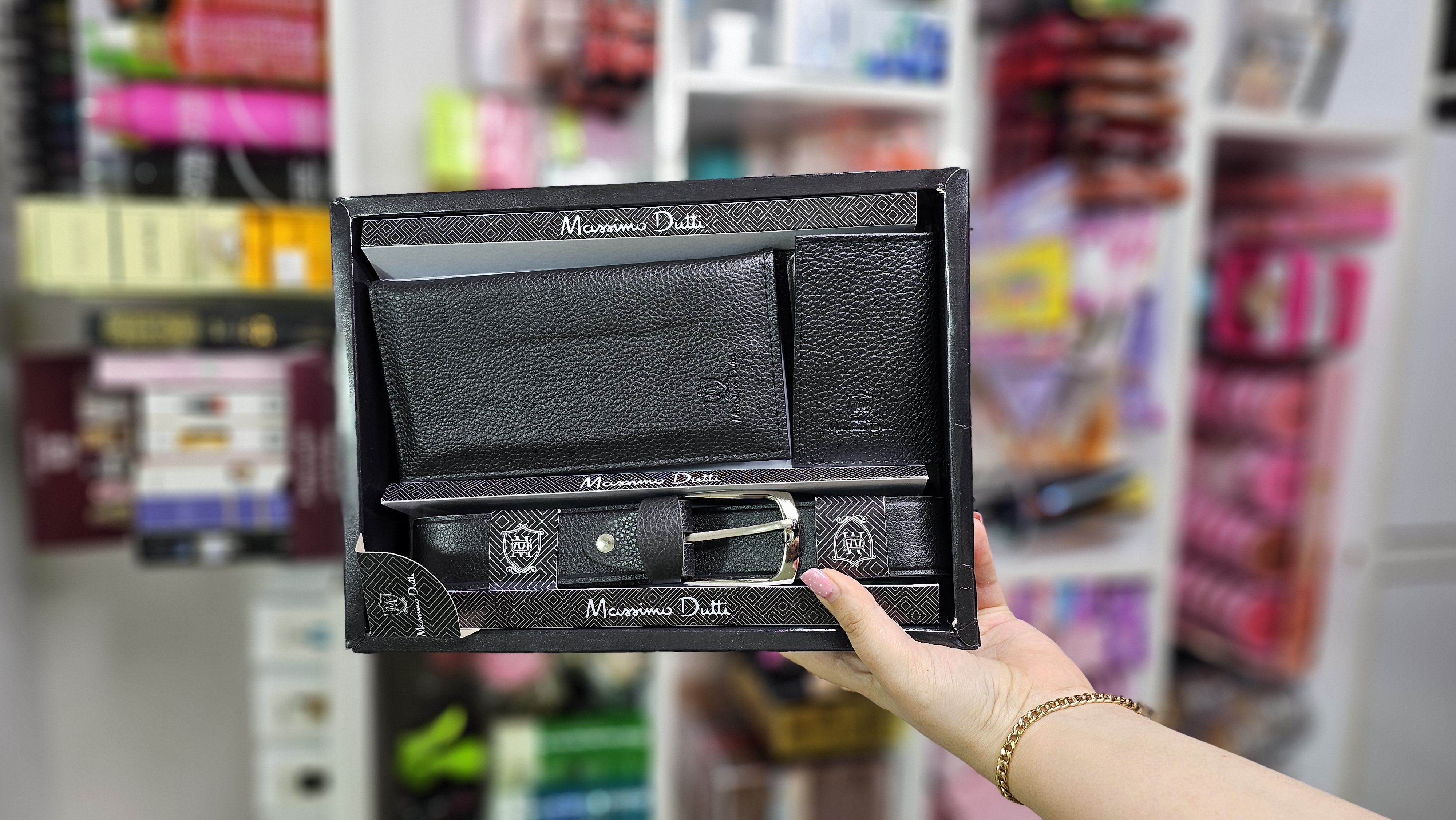 ست چرم مردانه ۳ تیکه زبانه دار [ کیف، کمربند، جاکارتی ]
