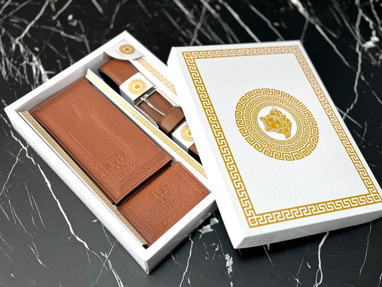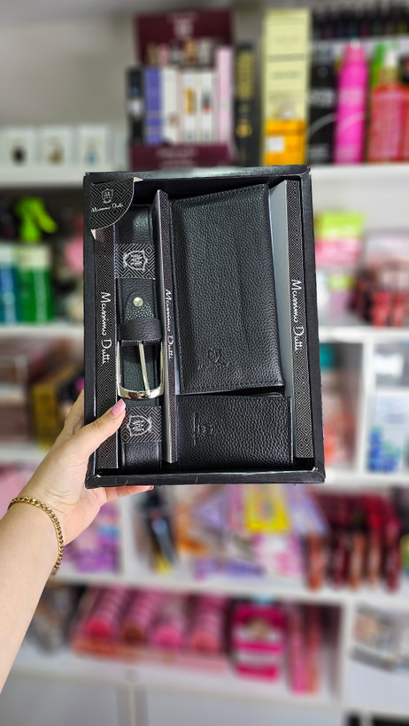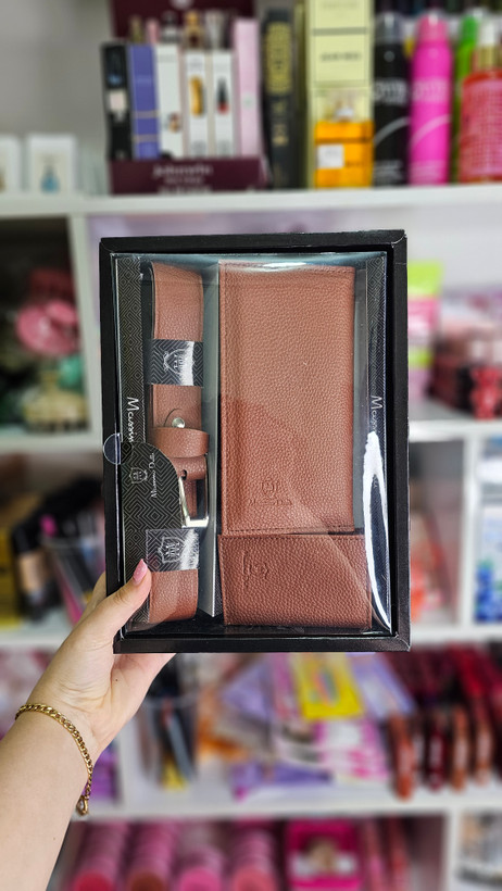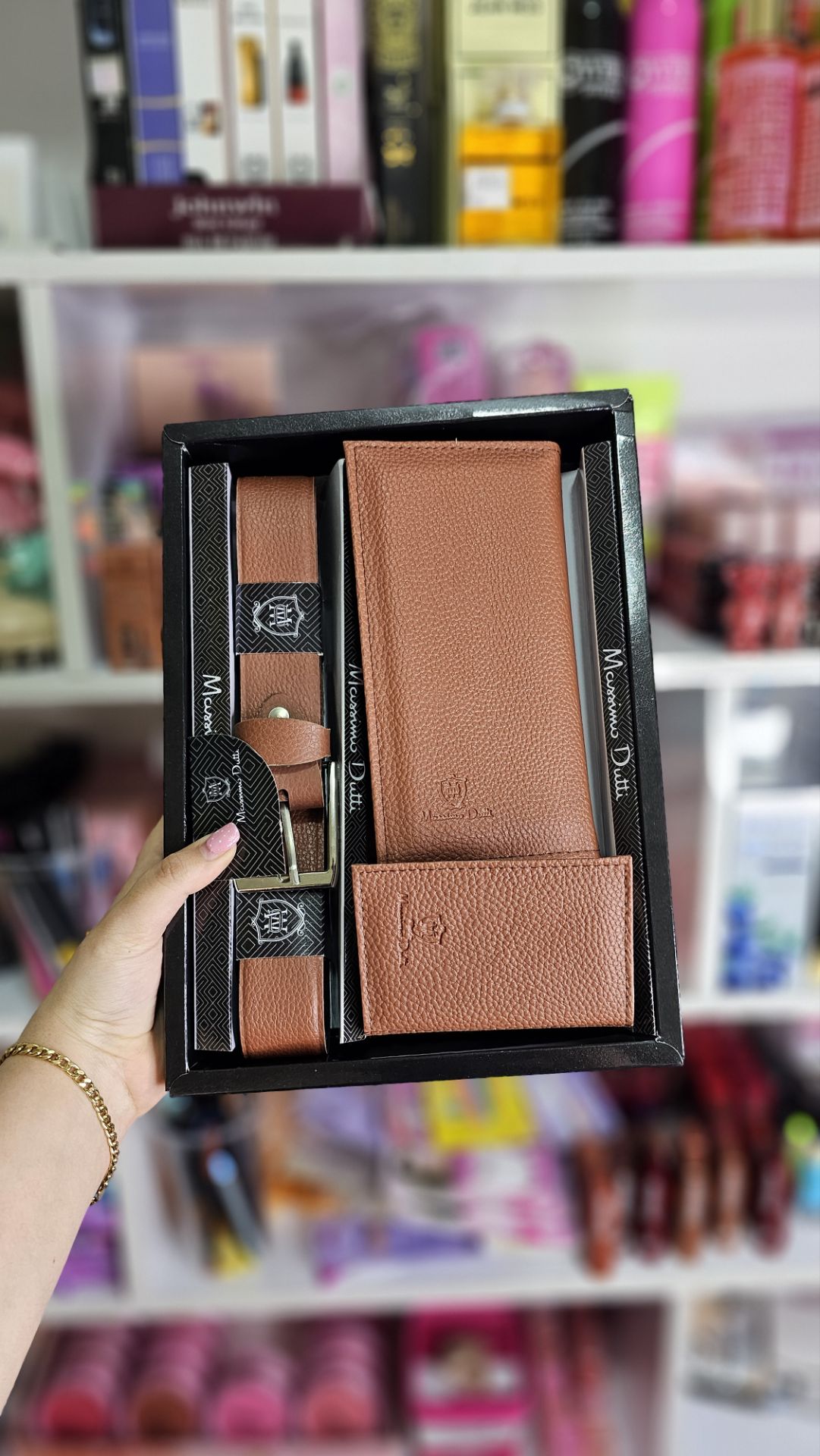 ست چرم مردانه ۳ تیکه زبانه دار [ کیف، کمربند، جاکارتی ]