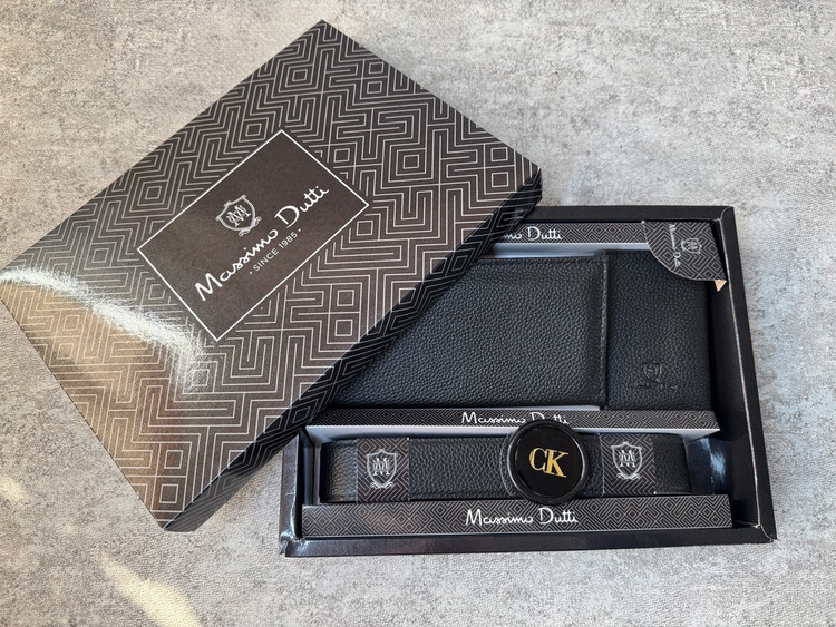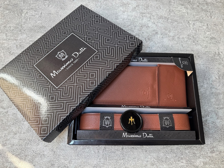 ست چرم مردانه ۳ تیکه پلاک دار [ کیف،کمربند،جاکارتی ]