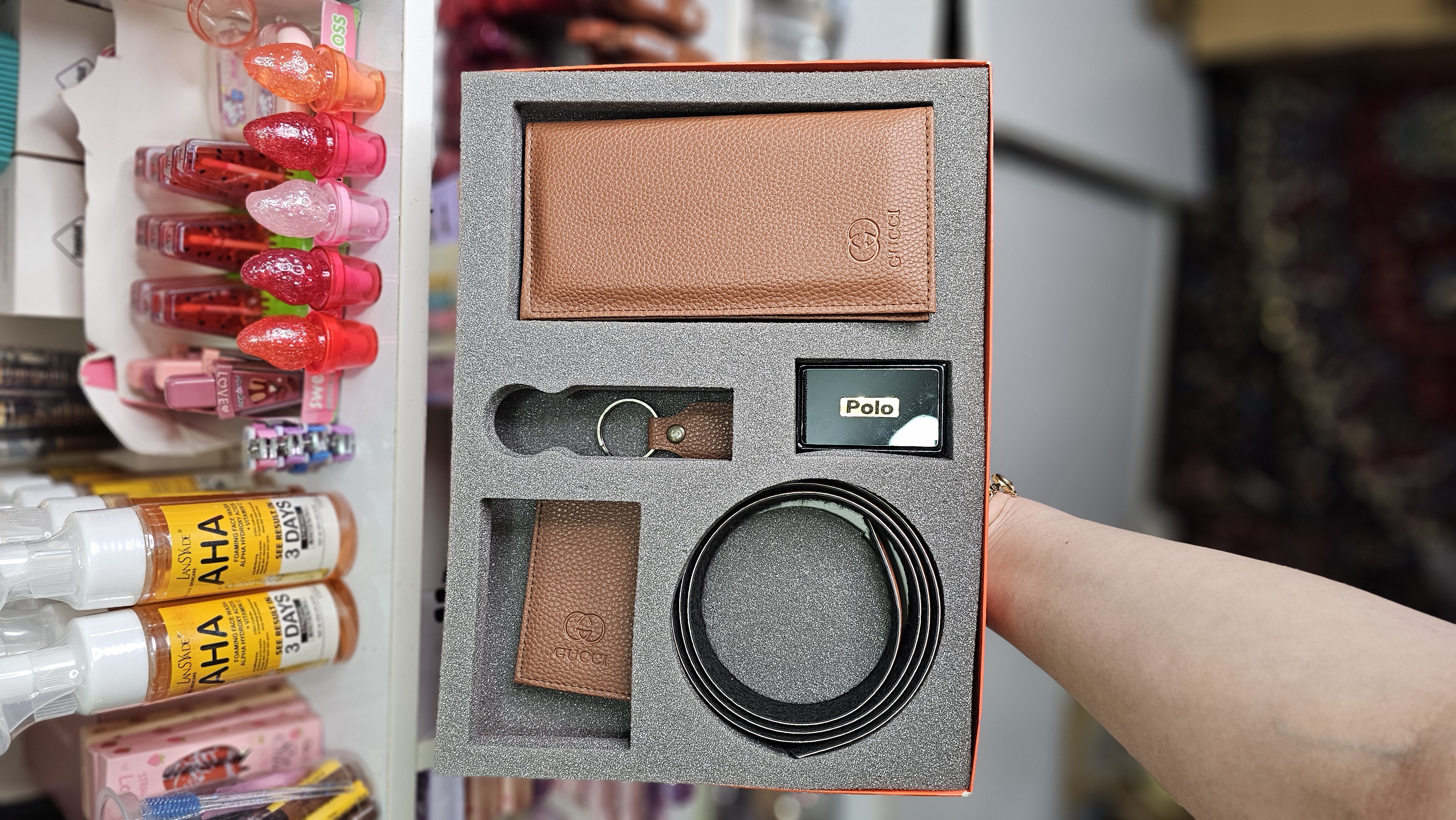 ست چرم ۴ تیکه پلاک دار مردانه💕گوچی شامل: کیف پول، جاکارتی، کمربند،جاکلیدی در دو رنگ عسلی و مشکی💫💥 چرم مصنوعی💯 پوسته پوسته نمیشه کیفیت بالایی داره💚